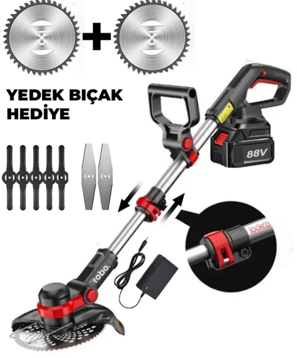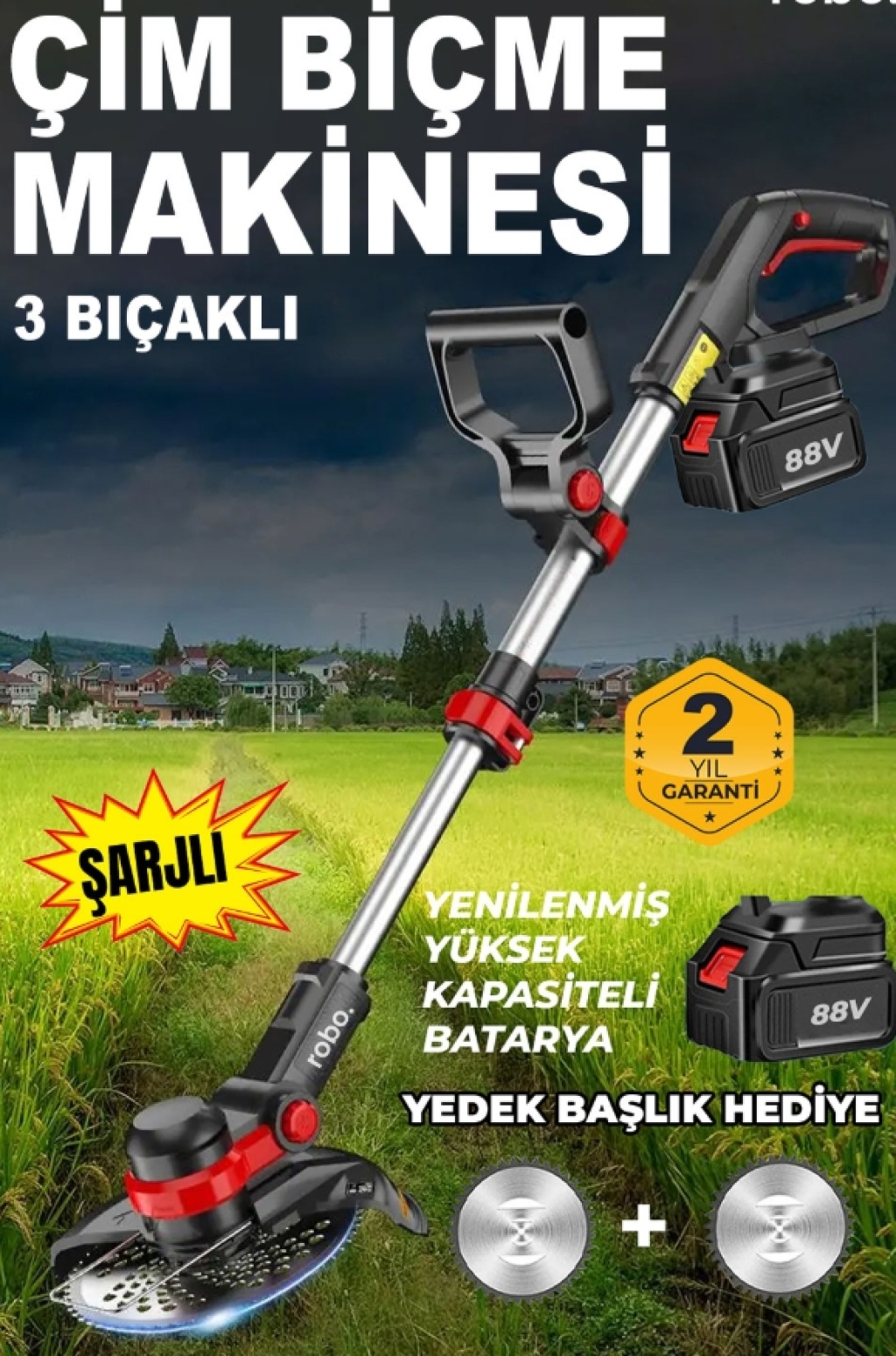 - 3 Bıçaklı şarjlı el tipi çim biçme makinesi, Çim Biçme, dalları ve sert çalıları kesmek için uygundur.